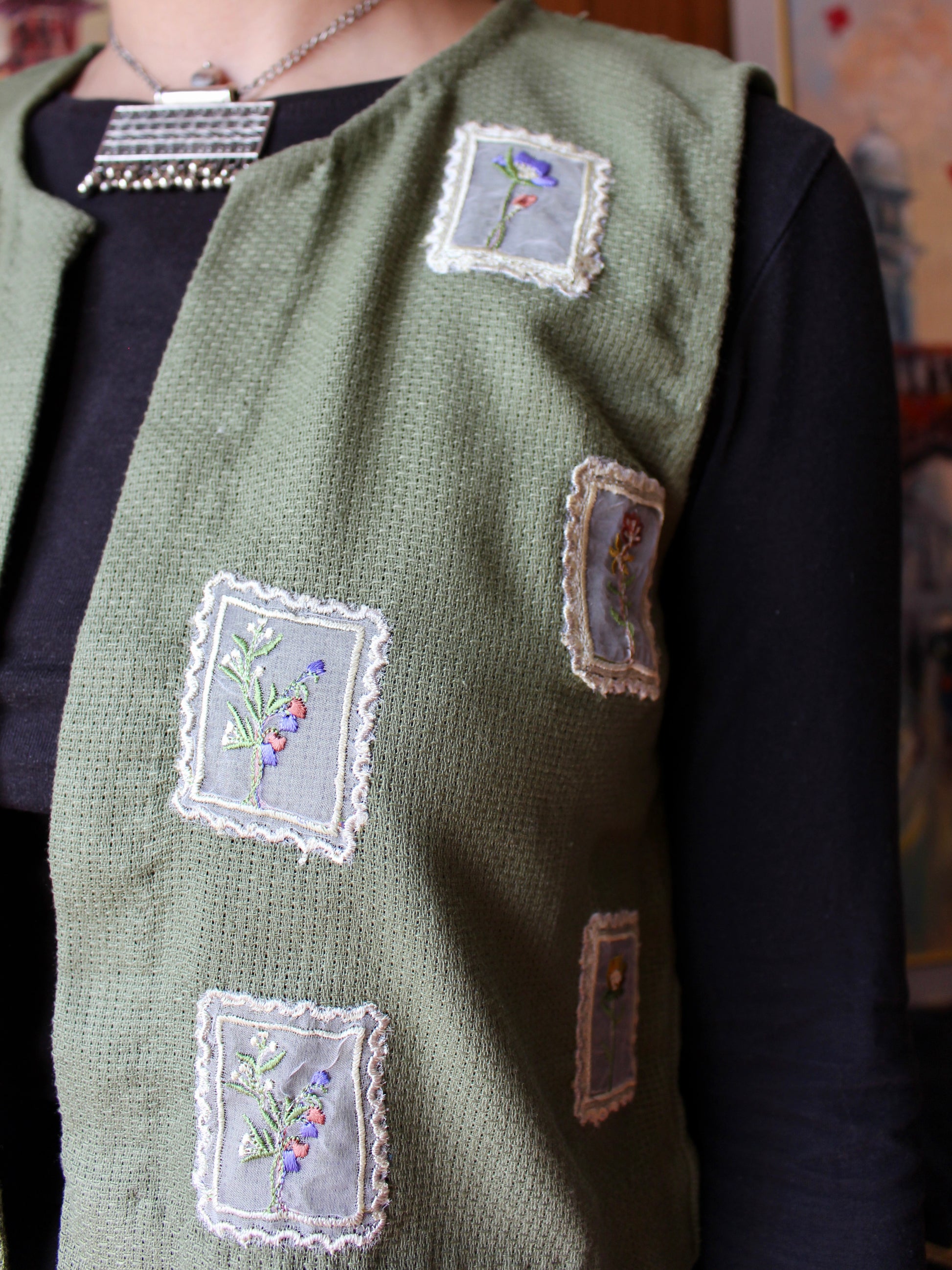 This koti is crafted in lightweight soti fabric (cotton) to be styled with ease and versatility across seasons and outfits. It features carefully appliquéd stamp-inspired flower patches across the front for a chic yet vibrant look.