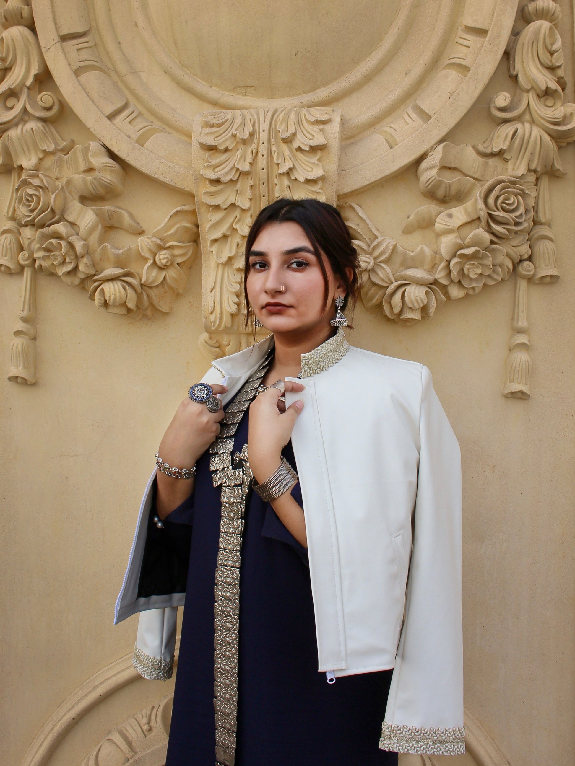 Naqsh-e-Zaar draws from Lahore’s long, quiet lineage of artisans who kept the city’s identity alive through hand embroidery, adda work, and the delicate craft traditions that shaped its cultural memory. Inspired by these generational techniques, this piece echoes the textures and rhythms of this heritage while stepping into a modern silhouette. It is a fusion of what the city has always been, artful, intricate, deeply rooted, and what its young women are becoming confident carriers of their past, shaping their own place in contemporary fashion with grace and intent.