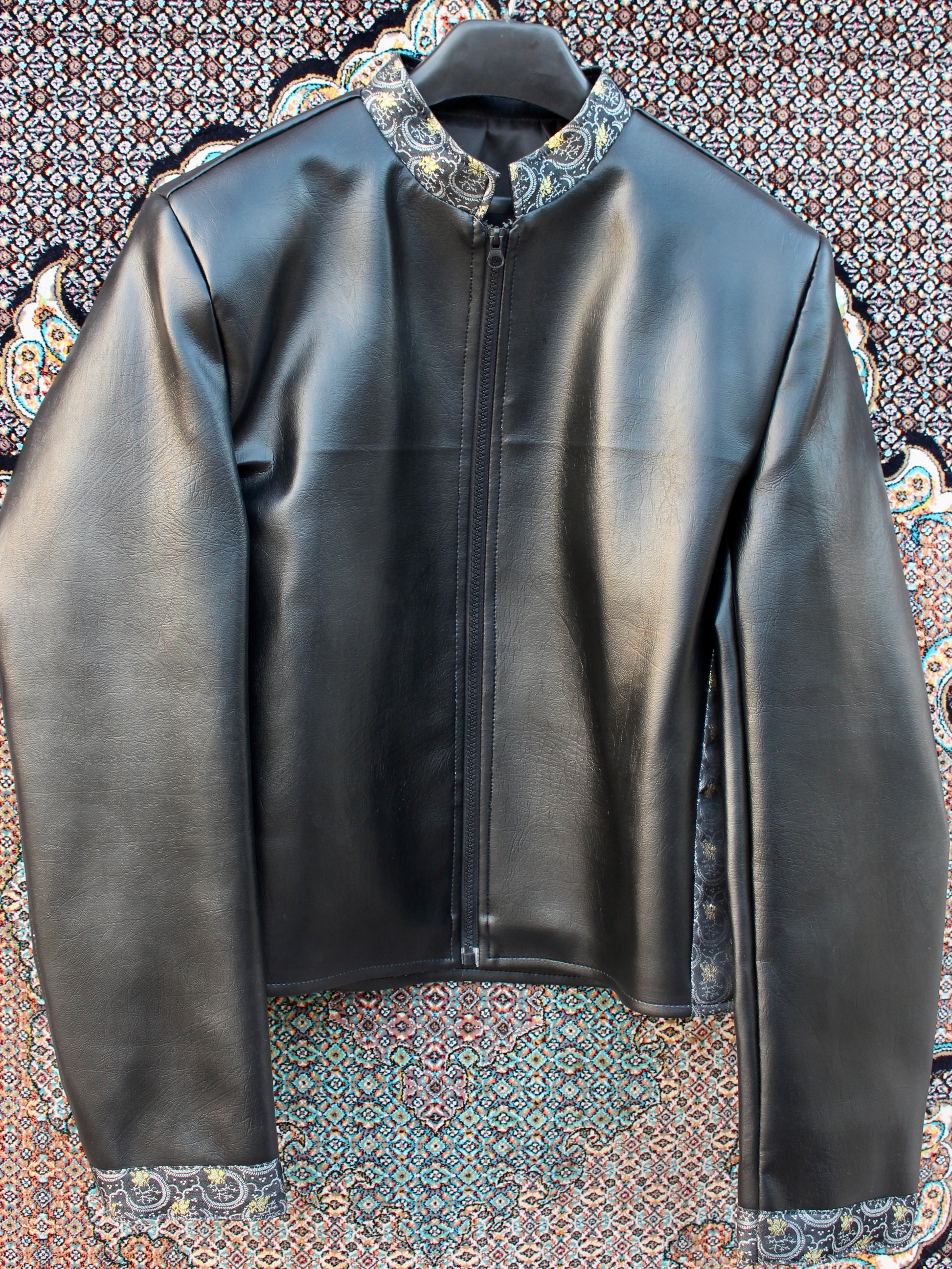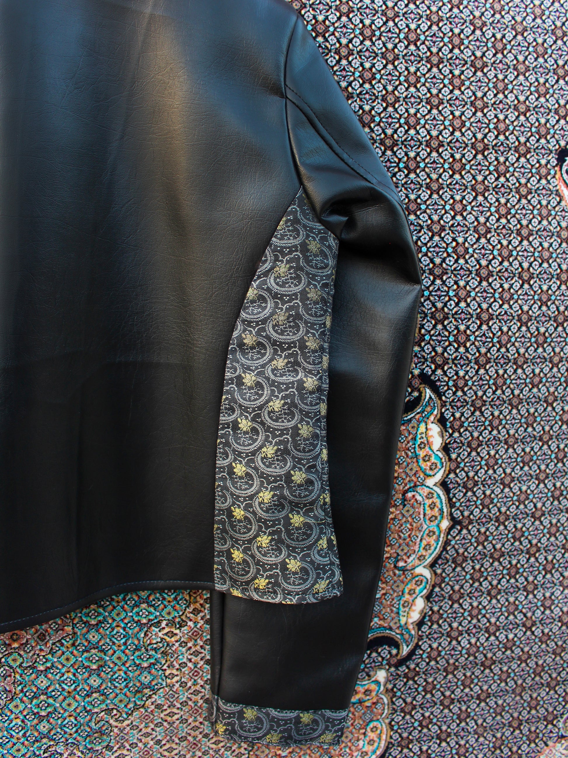Crafted in imported vegan leather (Polyols 60%, MDI 40%) and intricate Jamawaar fabric, this piece offers durability with a soft, premium finish. Available in five understated tones, dull champagne gold, muted taupe, dark brown, beige, and black, it sits effortlessly within a neutral, elevated palette. The silhouette follows a relaxed structure, lightly contoured at the waist for comfort and a subtle shape. Designed to transition seamlessly between everyday wear and evening looks, Shehar Zadi brings understated cultural elegance to a modern wardrobe